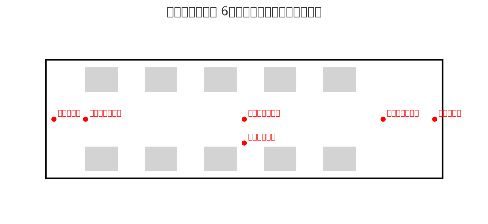 6台でも「前後+車内全体+座席下」をカバーでき、スクールバス用途で必要な安全確認は確保可能です。